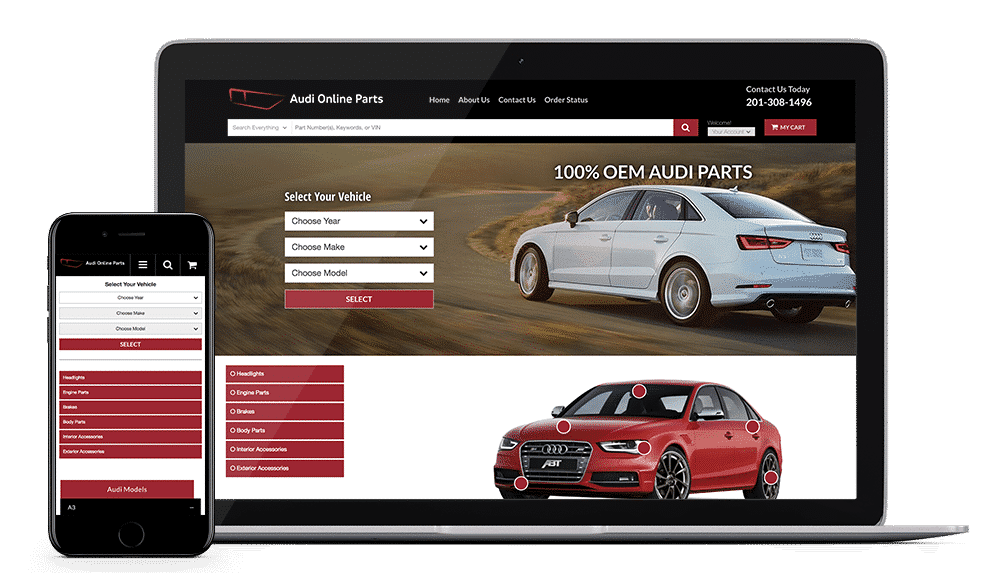 This Audi team not sells on their standalone parts website, but also captures sales on their dealership site.