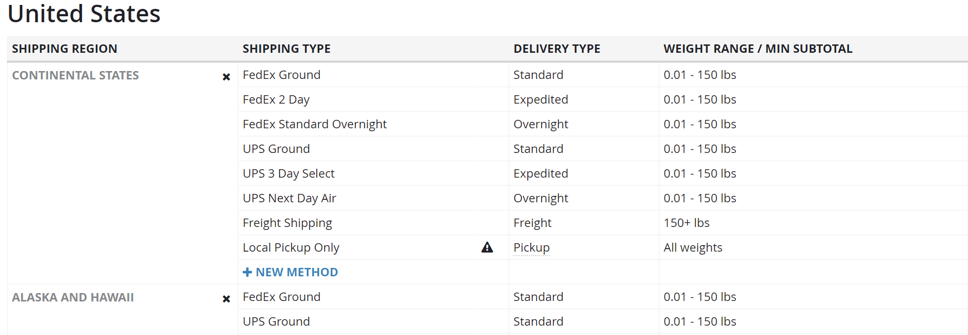 You also have flexibility in how you set shipping rules. When you set up different methods like standard mail versus 2- day shipping, you can set a shipping carrier and padding fees. You can even tier your pricing so that heavier items have a larger fee, in order to help you ship profitably.