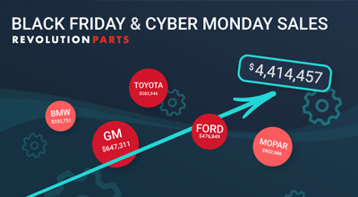 During Black Friday weekend, stretching through Cyber Monday, RevolutionParts customer webstores generated 1,000,372 unique visitors and sold more than $4.41 million in OEM parts and accessories