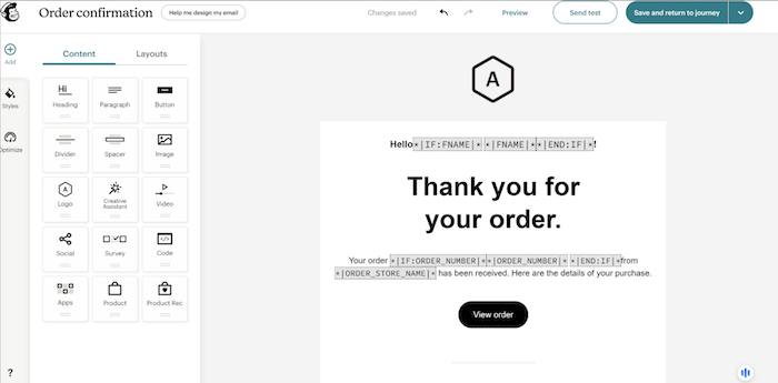 Use the email builder to create the exact email you want. Mailchimp will give you a template, but you can edit it to make a completely customized email for your auto parts business. If you have questions during the process, Mailchimp is very good at offering helpful videos and chats to guide you through the process in real time. Customizing your journey helps ensure that your auto parts email list segmentation is as effective as possible.