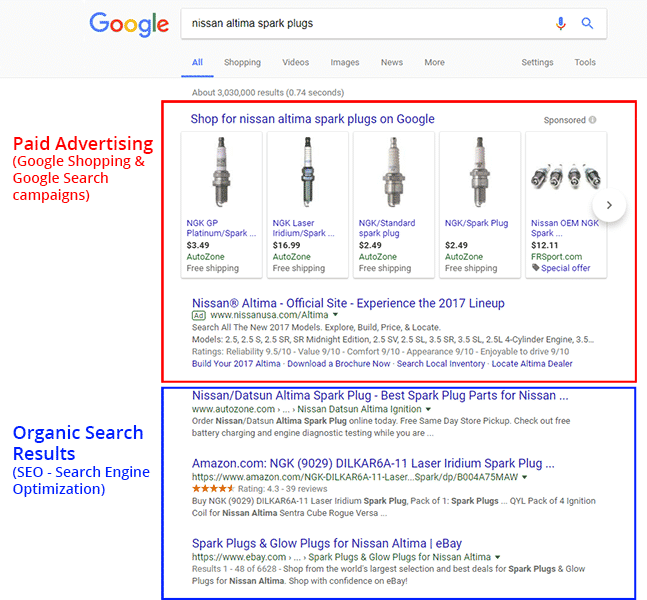 Google Ads is Google’s advertising service, where advertisers can create and run ad campaigns. These ads will appear in Google search results, so your advertisements will appear to shoppers using Google to search for the auto parts they need.