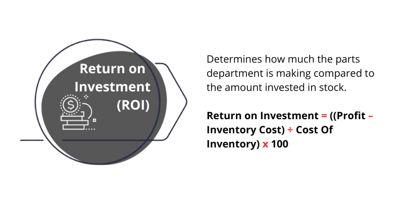 Return on investment (ROI) is a metric that helps evaluate financial performance and understand how profitable your investment is by comparing how much money you have invested in your stock versus how much you get in return. The higher your ROI, the better your parts business is doing financially.