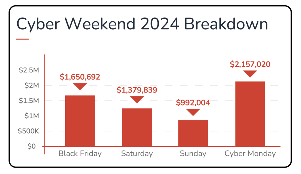 RevolutionParts dealers came through with impressive performance, driving $6,233,904 in parts and accessories sales during the 2024 Cyber Weekend. This massive total reaffirms that online parts sales are a significant revenue opportunity for those who seize it. Whether it’s a tough year or a smooth one, online sales remain a core revenue stream for dealerships, providing stability and growth in an unpredictable market.
