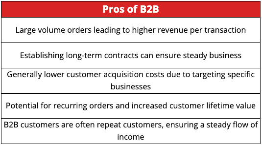 There’s also the issue of brand reputation. It’s much easier for B2B clientele to pass off issues to their suppliers when dealing with end buyers. When a large portion of your brand image is outside of your control, it can lead to lost customers and a drastic decrease in your B2B network.