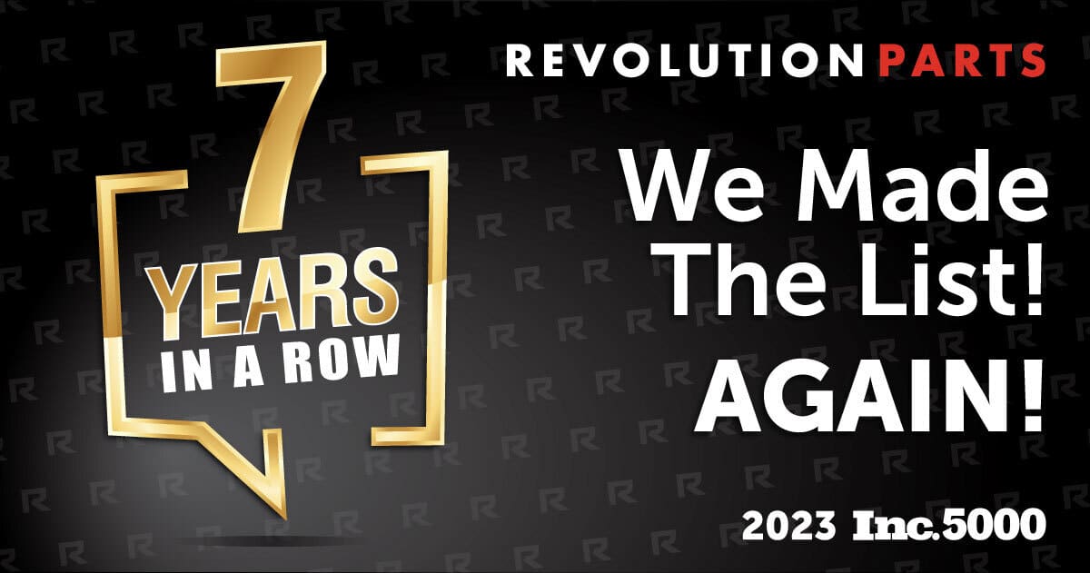 PHOENIX, AZ, August 15, 2023 – Today, Inc. revealed that RevolutionParts is on the 2023 Inc. 5000, its annual list of the fastest-growing private companies in America. The prestigious ranking provides a data-driven look at the most successful companies within the economy’s most dynamic segment—its independent, entrepreneurial businesses. Facebook, Chobani, Under Armour, Microsoft, Patagonia, and many other household name brands gained their first national exposure as honorees on the Inc. 5000.