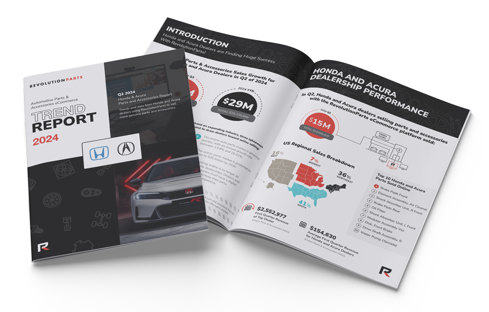 Each quarter, we analyze and compile key data to give you valuable insights into the performance and trends of Honda & Acura US dealers selling parts and accessories through RevolutionParts. Our reports typically include: