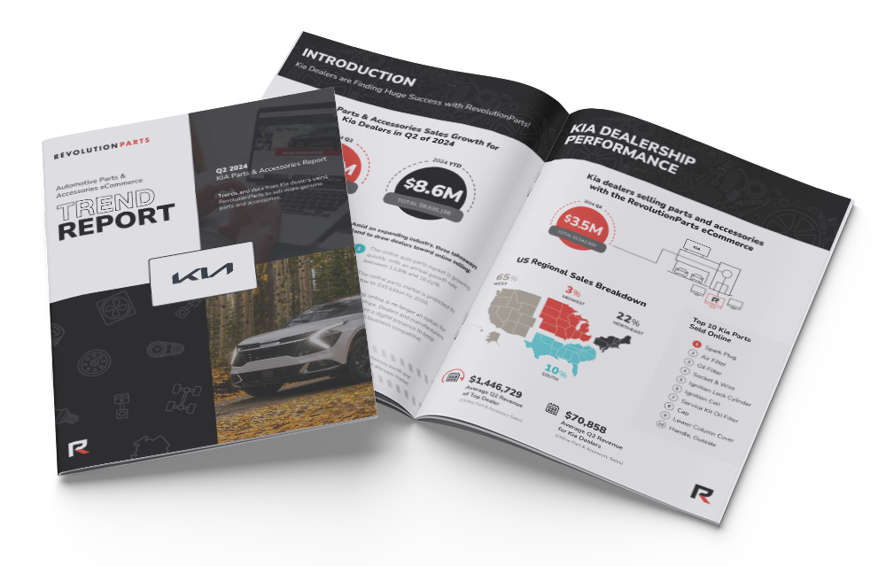 Discover how online sales are transforming Kia US dealerships. Our quarterly reports provide comprehensive overviews of the successes achieved by dealers using the RevolutionParts platform to boost their car parts and accessories sales.